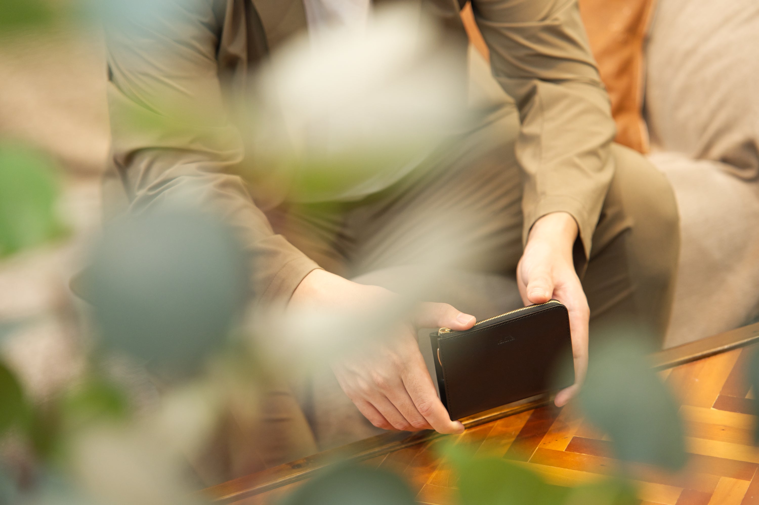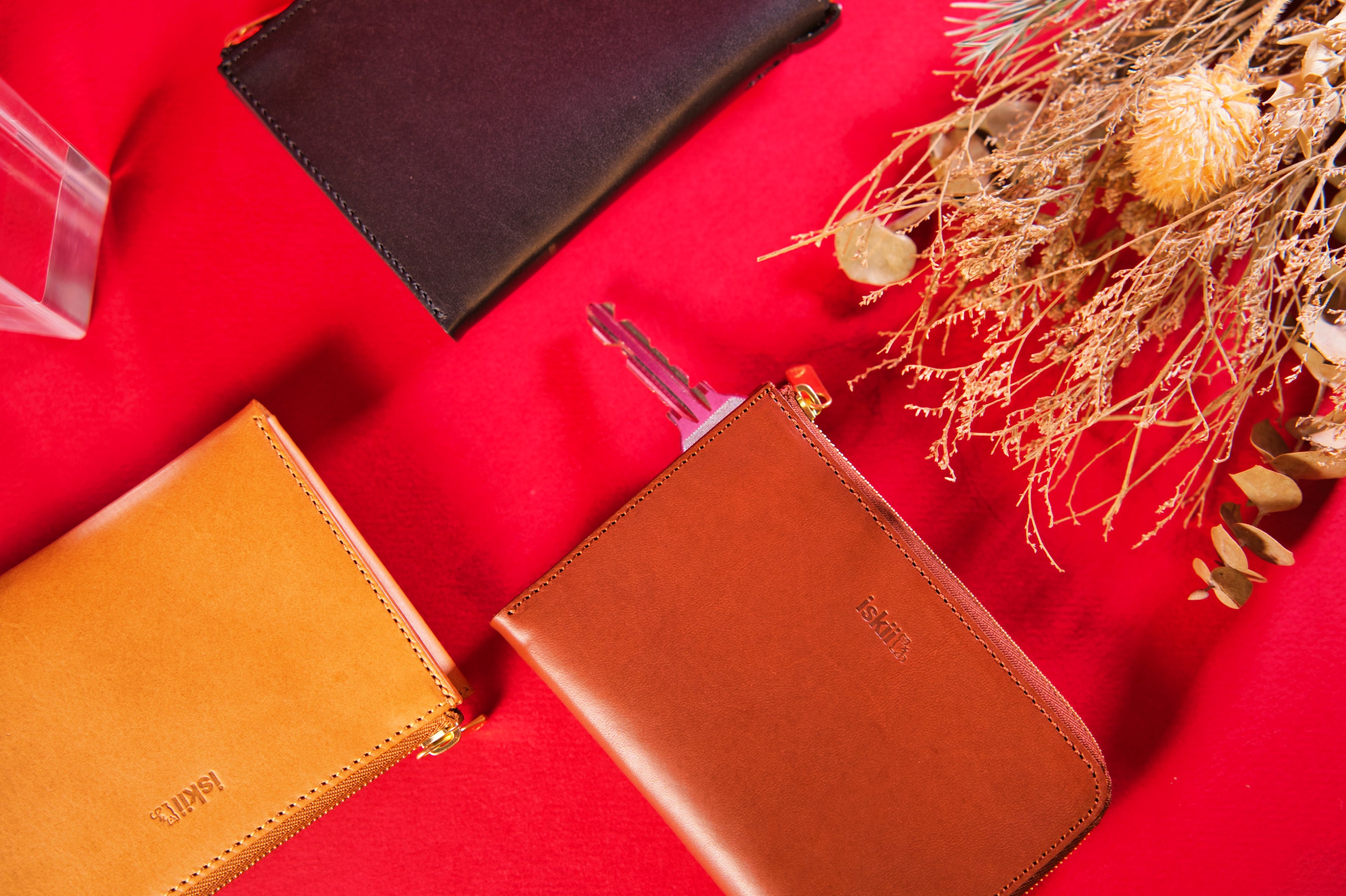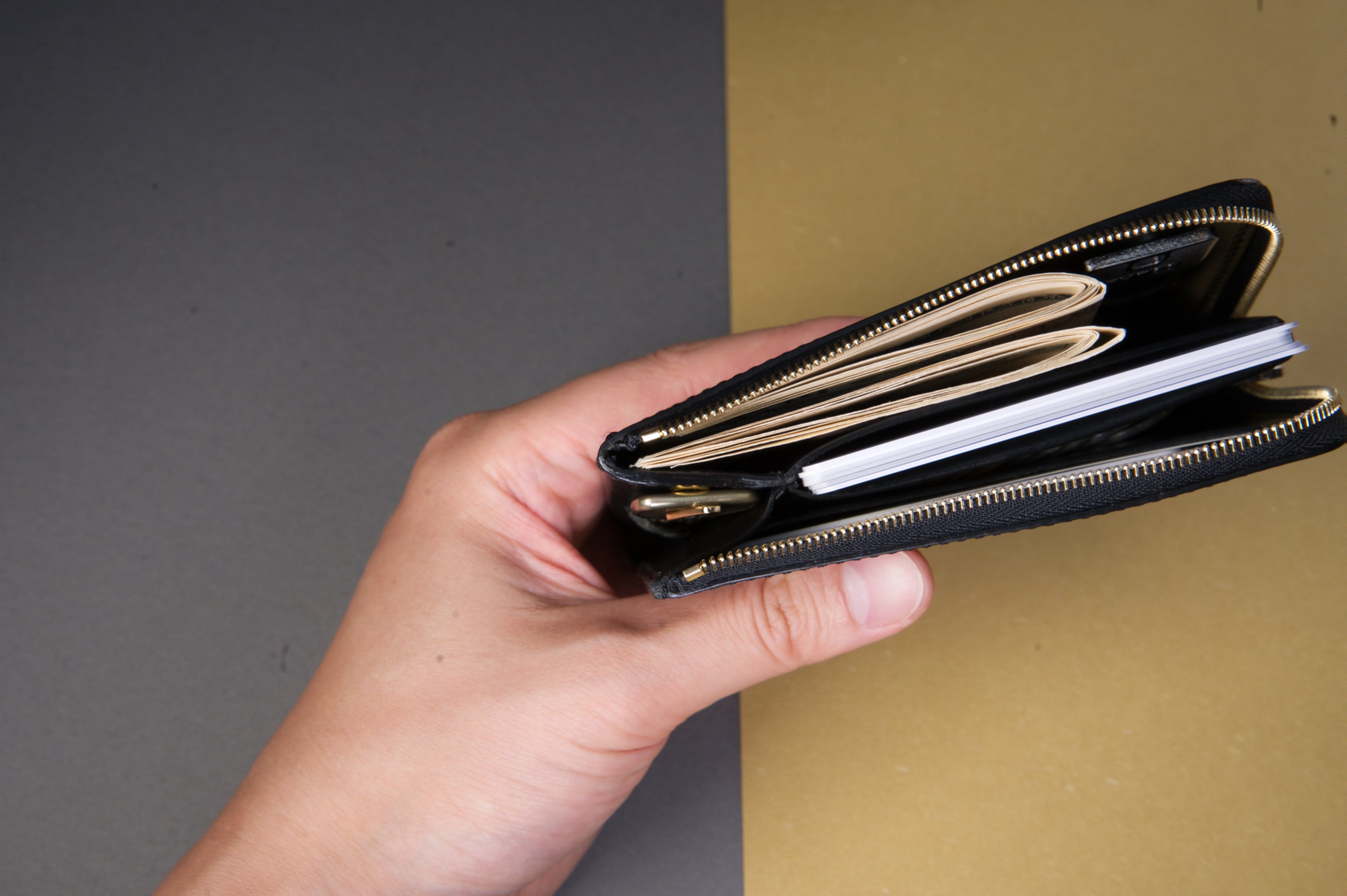 車のスマートキーを財布とジョイントできるゴールドのハブリングも付属。