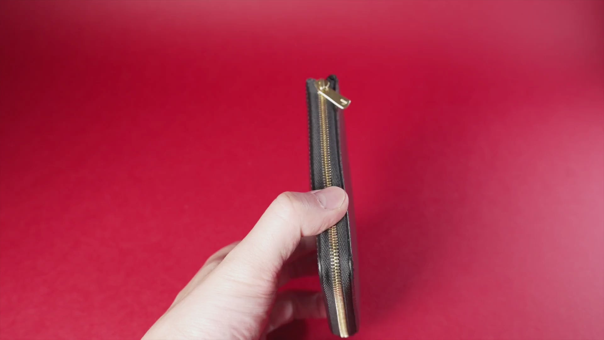 1万円札・鍵・カード・小銭を十分に収納する限界に近いサイズ。重なりづらい配置で厚みを抑える工夫がされています。